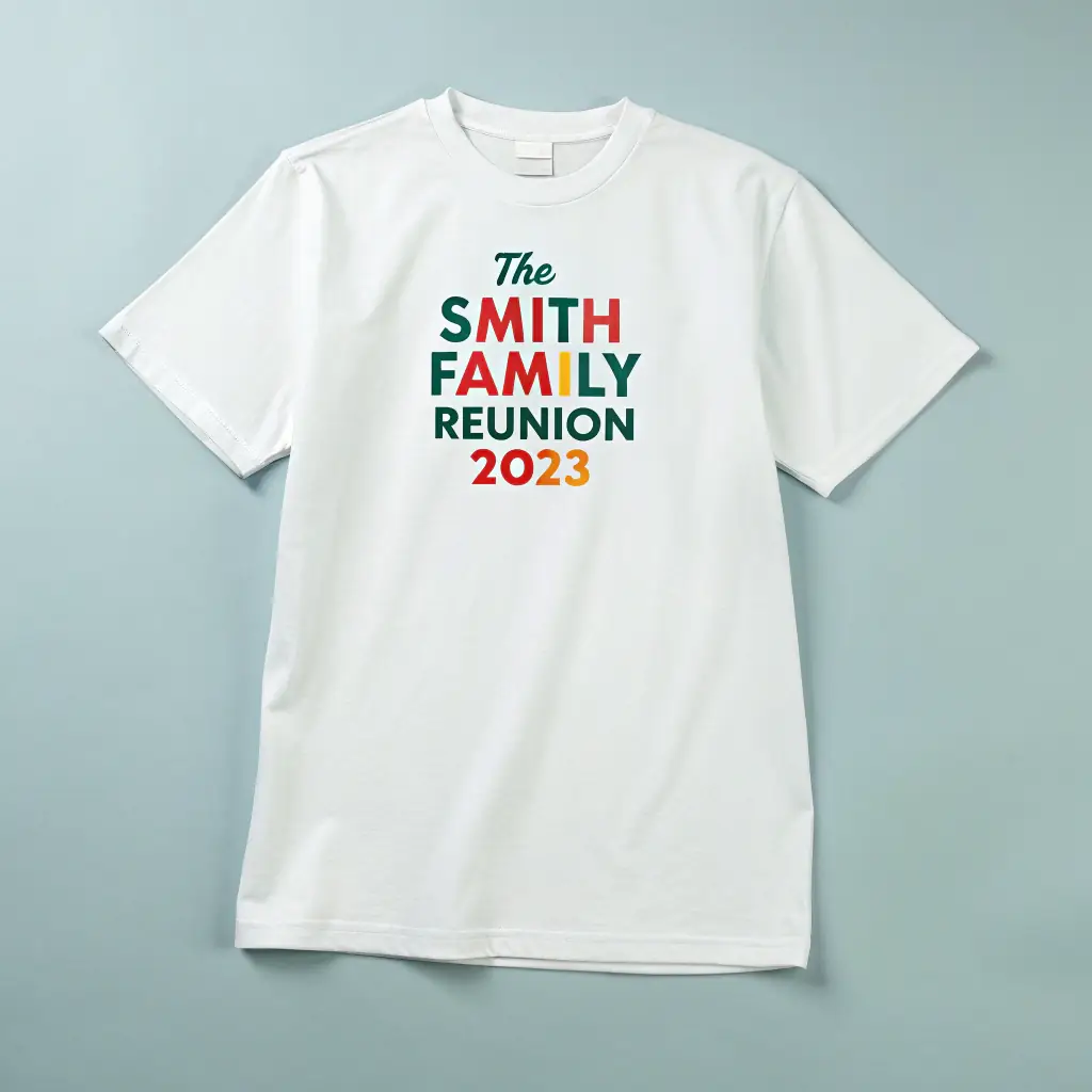 Celebrate your family gatherings with this personalized family reunion T-shirt. Made from soft, high-quality cotton, it features customizable text and designs to showcase your family name and reunion year. Perfect for creating lasting memories and unity among family members. Available in various sizes and colors to suit everyone in the family.